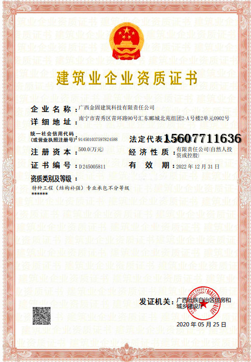 廣西加固工程需要特種工程專(zhuān)業(yè)承包資質(zhì)(特種工程專(zhuān)業(yè)承包資質(zhì)不分等級(jí)),結(jié)構(gòu)加固(房屋加固也屬于結(jié)構(gòu)加固)工程必須是有資質(zhì)的施工隊(duì)伍進(jìn)行施工,結(jié)構(gòu)加固屬于特種專(zhuān)業(yè)工程,進(jìn)行加固的施工屬于特種專(zhuān)業(yè)工程專(zhuān)業(yè)承包。
